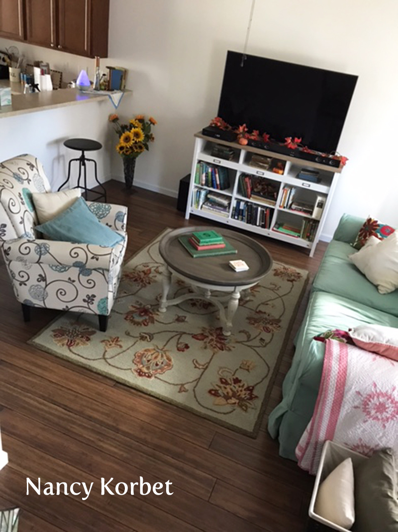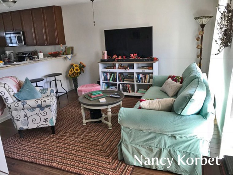 “I got a bigger rug, I first thought it would go under the kitchen table, but was too big, so I switched them. I like it. It makes the room seem bigger. Crazy.”
